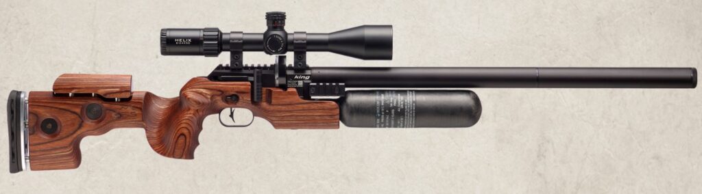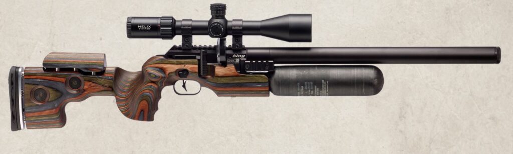 With the large innovative over the barrel plenum system like you can find on other FX models the FX King can use the big volume to its advantage. Whether you want to shoot pellets or heavy slugs the FX King can handle it all while maintaining a sleek look in a traditional sporter stock.