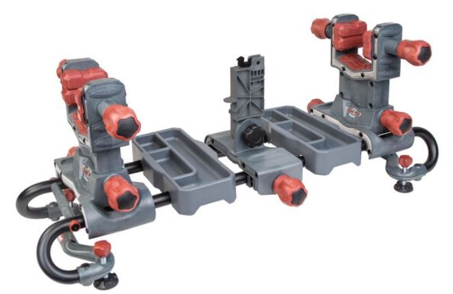 With it’s tough construction and ease of use, the Ultra Vise from Tipton offers a solid work area for gun tinkering and cleaning. I especially like the two tray that you get with the vise to put bit and bobs in so that you do not lose them. The solid clamps hold virtually any shaped gun firmly in place. If you own an AR15 then you will especially like the mag-well clamp that locks into your AR through the magazine well. Even a long barrelled pistol can be worked on as each individual vise can be slid along the tracks to accommodate any sized gun.